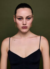 LOS ARETES BUSHIDO SMALL TIENEN LA FORMA DE UNA CASCADA MÁS CORTA DE ESFERAS HUECAS, OFRECIENDO EL MISMO IMPACTO ESCULTÓRICO EN UN LARGO MÁS VERSÁTIL. LIGEROS Y CÓMODOS, SON IDEALES PARA OCASIONES ESPECIALES DONDE LA ELEGANCIA Y LA FACILIDAD SON IGUALMENTE IMPORTANTES. DISEÑADOS PARA ENMARCAR EL ROSTRO DE FORMA SENCILLA, LLAMANDO LA ATENCIÓN A UNA ESCALA PEQUEÑA.