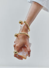 ESTE ANILLO METÁLICO BAÑADO EN ORO DE 24K REVELA UNA CONSTRUCCIÓN ARTESANAL QUE RESALTA SU FORMA ORGÁNICA Y VOLUMEN ESFÉRICO. LOS CALADOS DECORATIVOS RECORREN LA PIEZA CON ARMONÍA, MIENTRAS SU TEXTURA PULIDA Y ACABADO EVOCAN UNA INSPIRACIÓN NATURAL. UN DISEÑO CON AUTENTICIDAD Y EXPRESIÓN CONTEMPORÁNEA.
